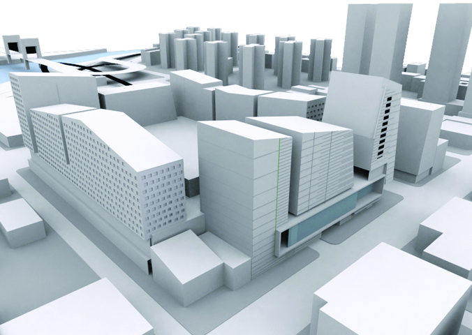 This proposal for two million square feet of new development on 125th street was listed for Stage 2 development. The program is for mixed use including 500,000 square feet of big box retail, 750 residential units, a multiplex cinema, hotel, media production studios, and parking for city buses and building tenants.